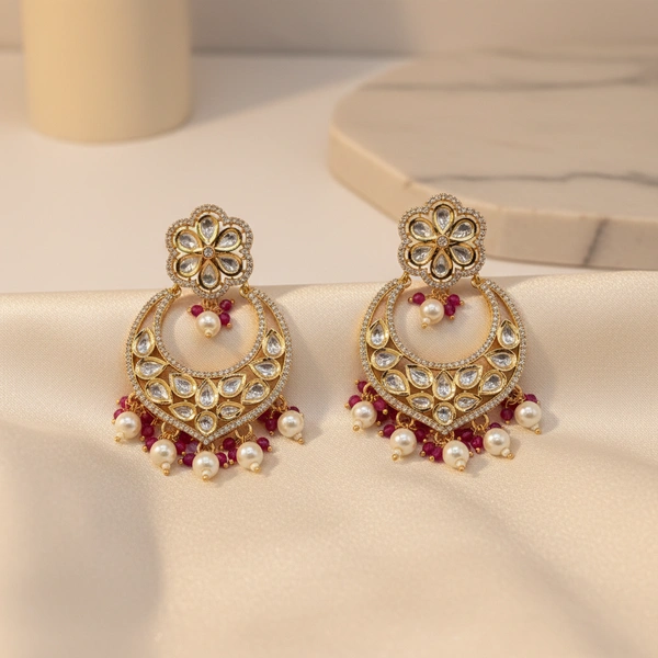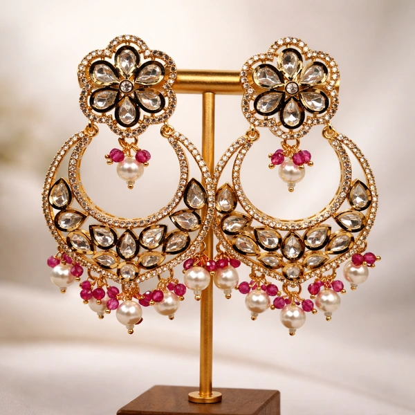 Chandbali in Kundan and pink beads