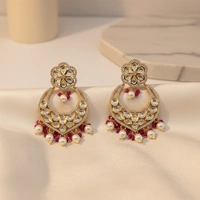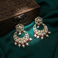Ethnic hanging earrings adorned with luminous pearls and intricate kundan, blending royal heritage with timeless grace, designed to sway beautifully and elevate every traditional look.