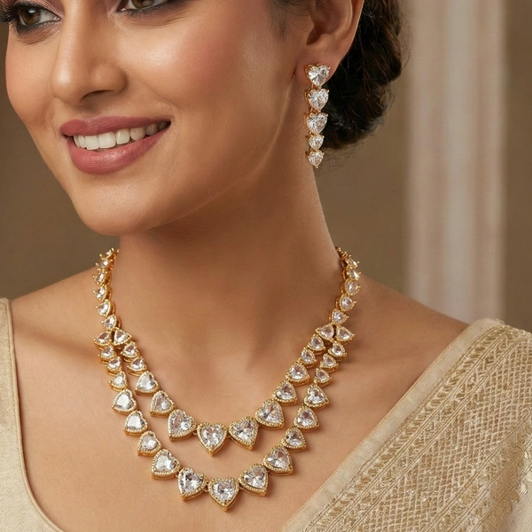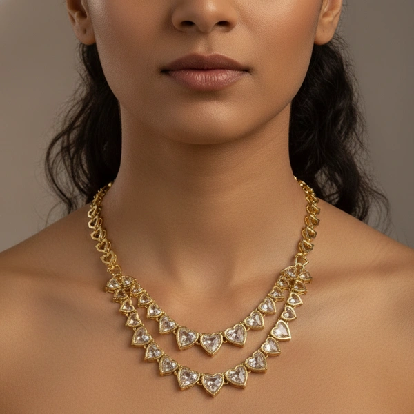 A string of heart-shaped American diamonds, crafted to shimmer with romance, empowering every woman who wears it to feel confident and regal like a queen.
