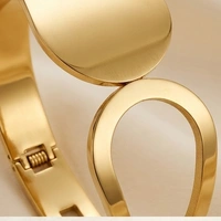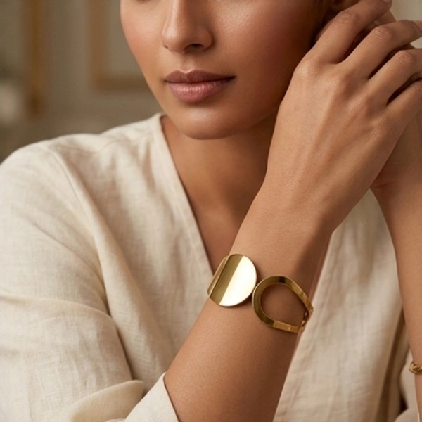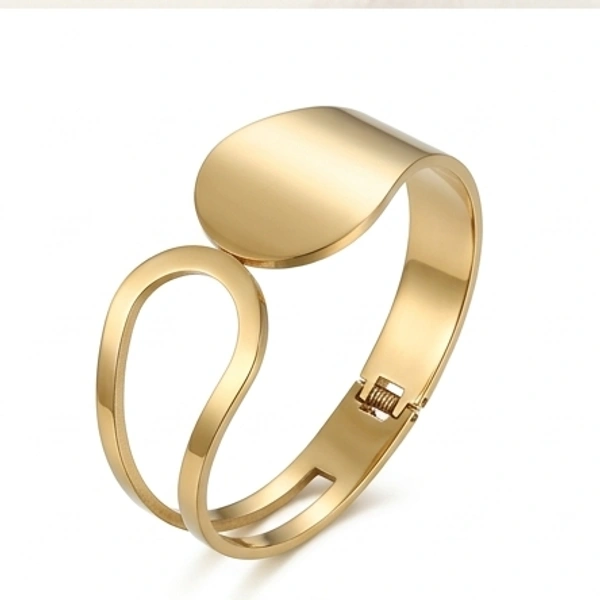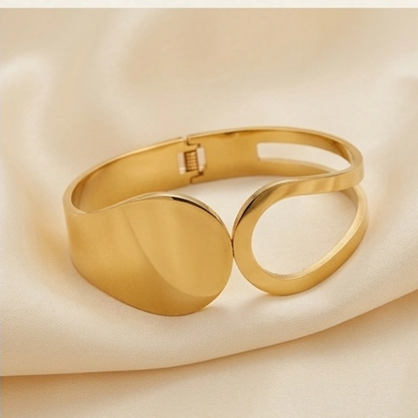 A sleek, open-design bangle that embraces the wrist with fluid, sculptural lines. Perfect for adding a touch of sophisticated, contemporary flair to any outfit.