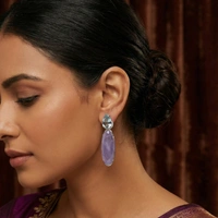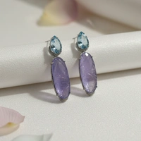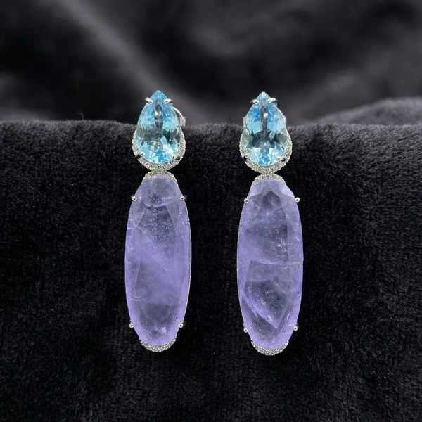 Ethereal violet stones paired with blue brilliance create elongated drops of quiet luxury. Refined, fluid, and effortlessly elegant, designed to glow softly with every graceful movement.