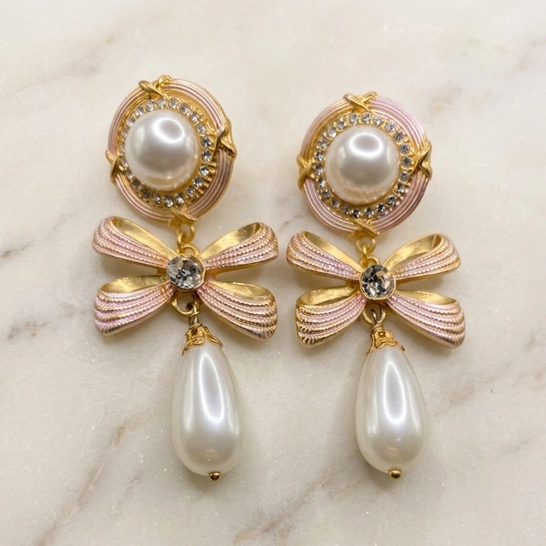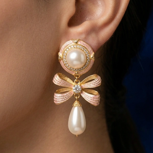A charming blend of classic pearls and delicate bow motifs that add a touch of feminine sophistication to any evening attire.